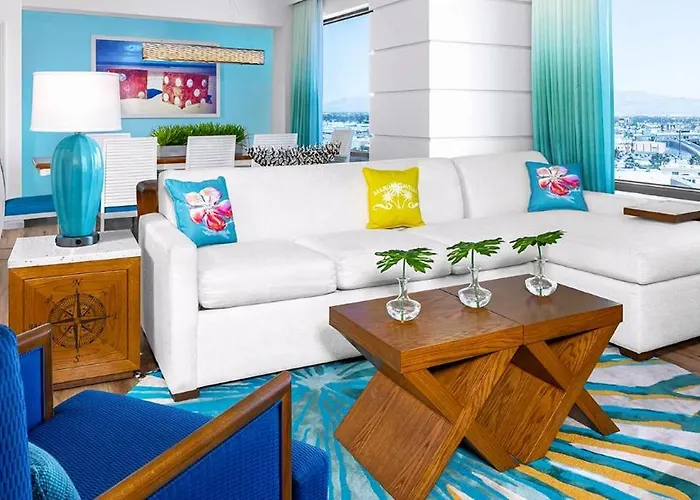 The 2-bedroom Wyndham Margaritaville Desert Blue 3Br Apartment With Resort Access Las Vegas villa boasts a location nearly a 5-minute walk from Fall of Atlantis Show and offers guests to enjoy a casino. Featuring a swimming pool, the property is located a mere 1.6 km from the LINQ Promenade.